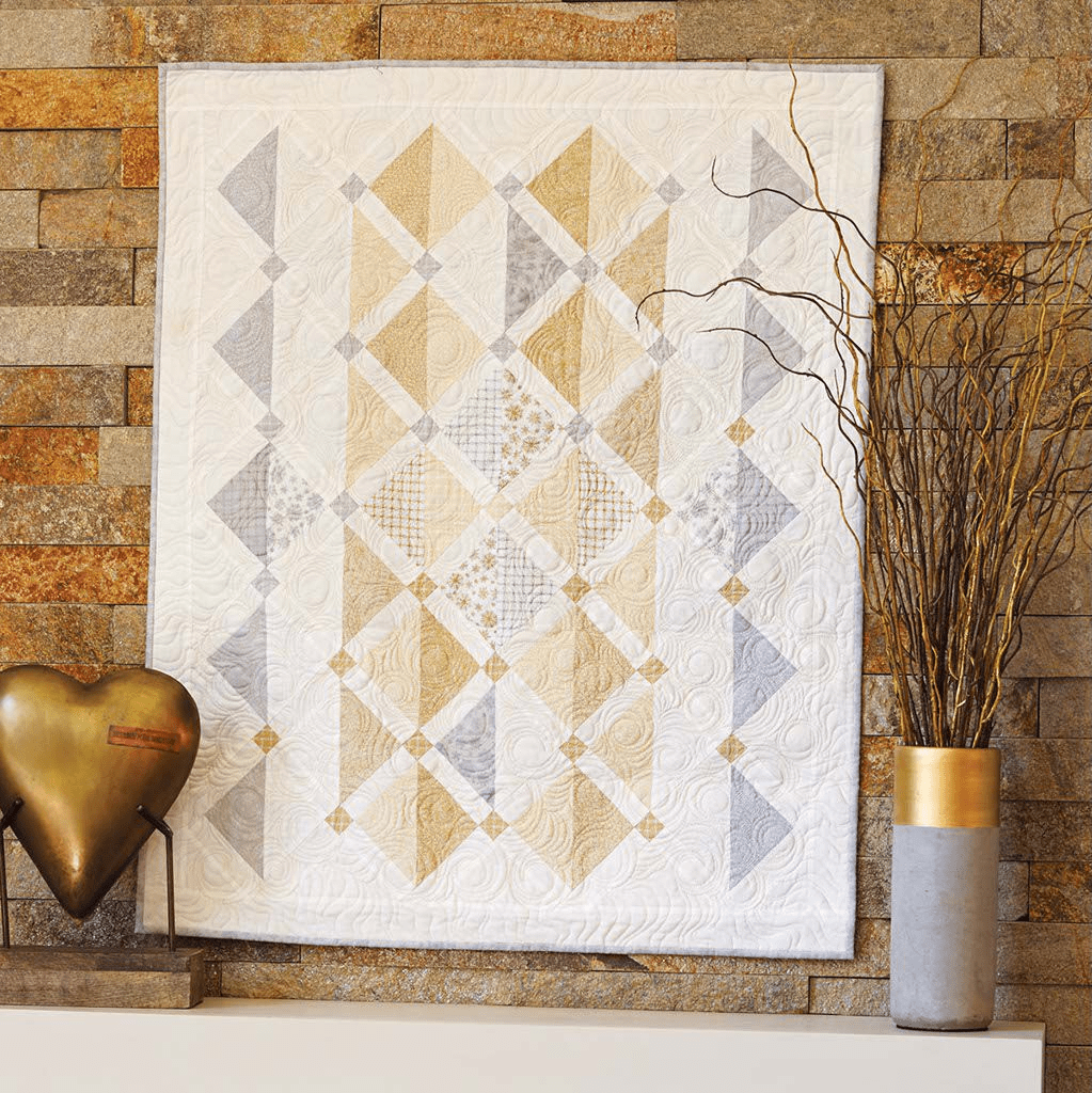 Colourwise Pip is a neutrals girl, not that easy to do in quilts as most have a little something to make them ‘pop’. I found a pattern on pinterest by Wendy Sheppard of Ivory Springs, it’s called Making Friends and I thought colourwise it was perfect.It’s all soft creamy golds and silvery greys.