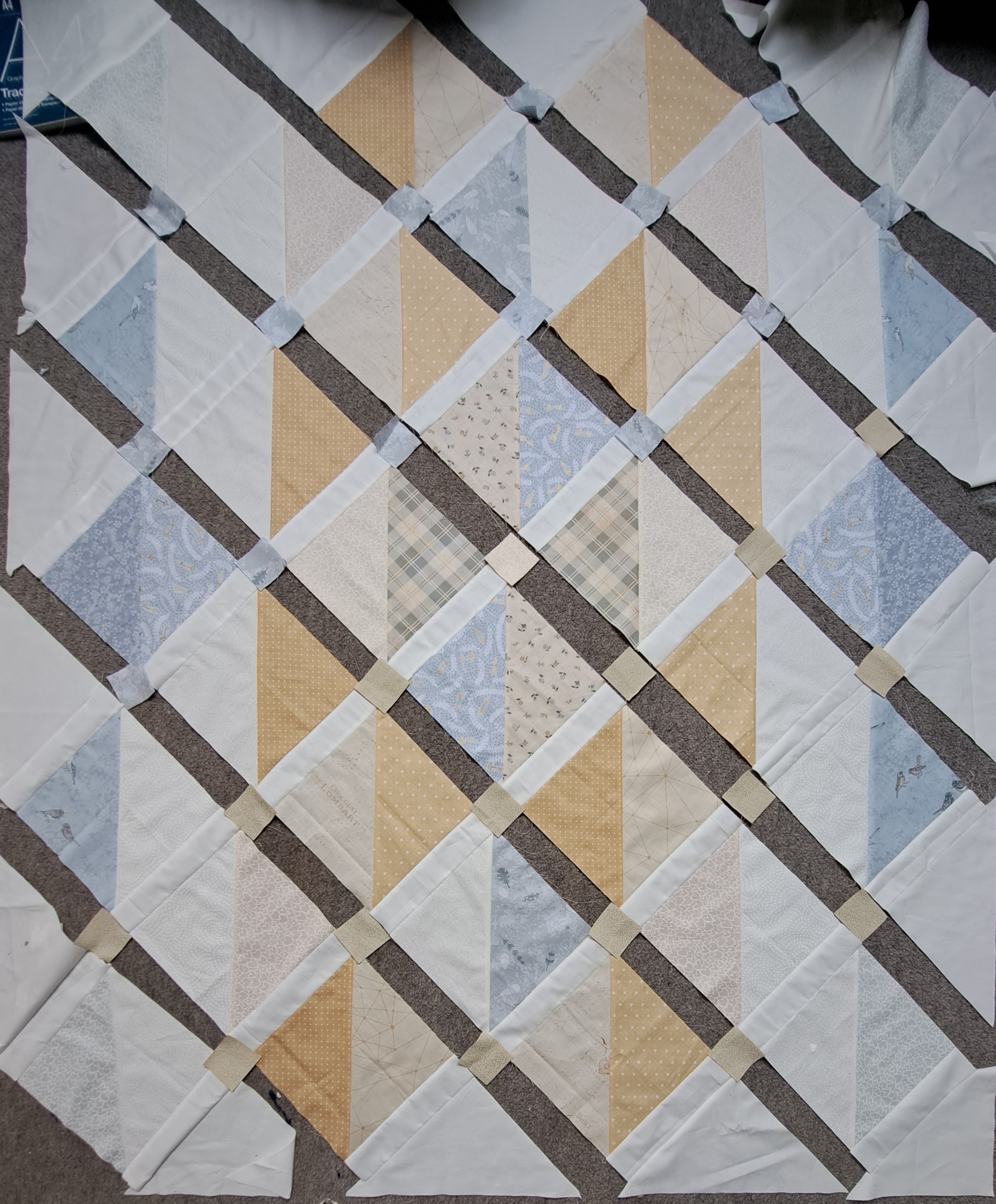 Layout two with the sashing half done…