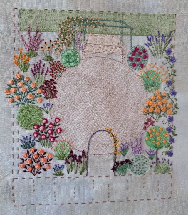 I’ve just finished what I hope is the last page for my embroidered garden book. I say ‘hope’ as I haven’t arranged the pages in order yet and there’s one more page that might be needed.