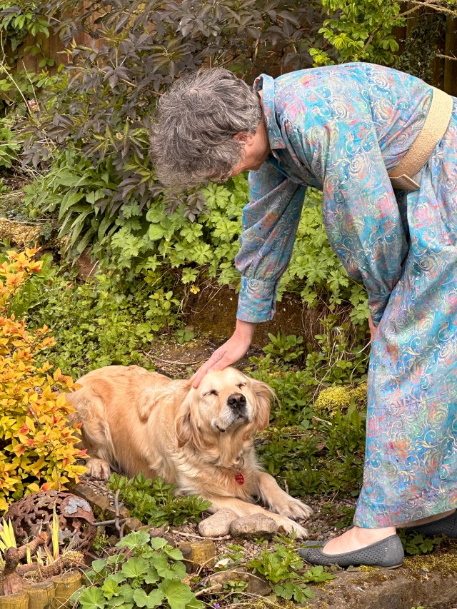 What a wonderful reunion, and a pretty dress for the occasion! Can there be a more contented face than that of your puppy?! 🙂