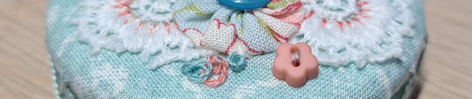 We then had to decorate the top circle with the Suffolk puffs, lace and buttons. This is how far I’d got when I had to go to catch my bus home…