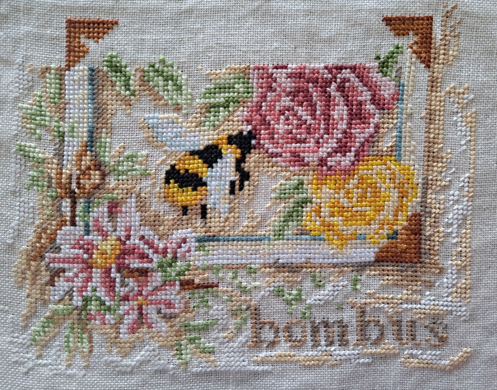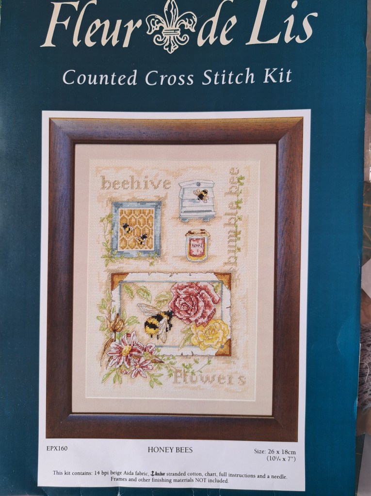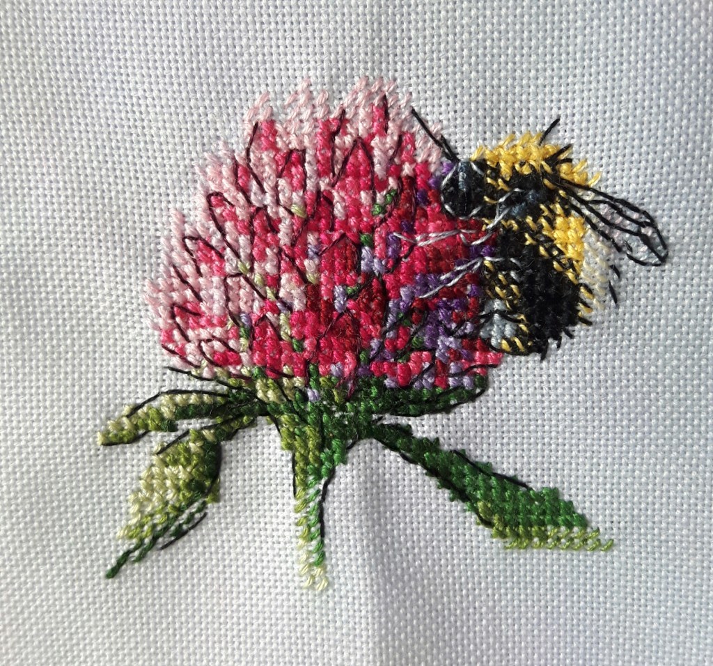 I’m planning to do some that aren’t cross-stitch too, but at the moment I’m half way through a cross-stitch bumble bee. I originally thought I might put this on the cover of the book, however I’ve decided there’s too much work involved in this to put it on the outside!! It’s from a kit I think I bought from a destash site. I’m not stitching it all together, I’m breaking it up into the four smaller pictures…
