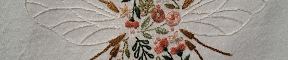 It’s gorgeous. The wings are stunning and I love the threads you’ve used for the flowers.