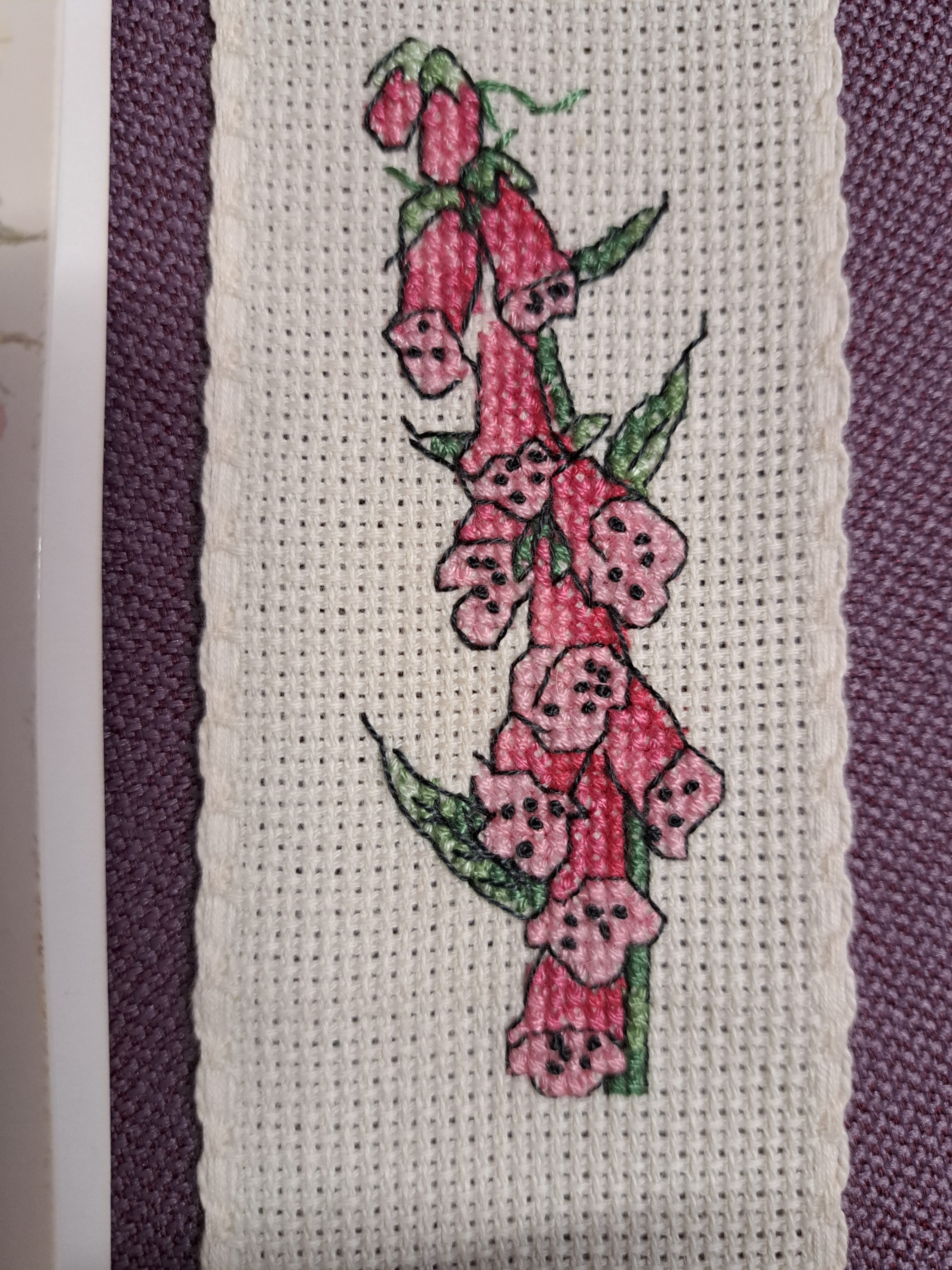 I had changed the aida in the kit from white to ecru, which I felt blended in better with the bookmark outer. I don’t like stitching on aida but I didn’t quite trust my thread counting to make sure an even-weave linen was the right size.