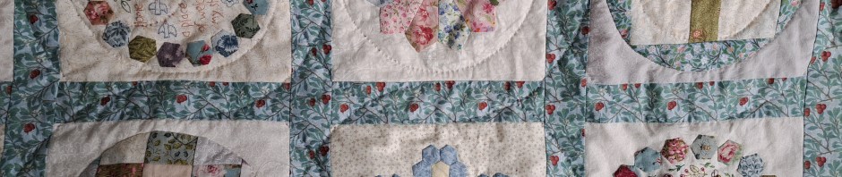 I’m just working on the ‘forget-me-not’ block at the moment, the one with six blue hexagon flowers on.