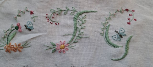 I’ve made pretty good progress as I’m now stitching K, I’ve just got a little more satin stitching to do.
