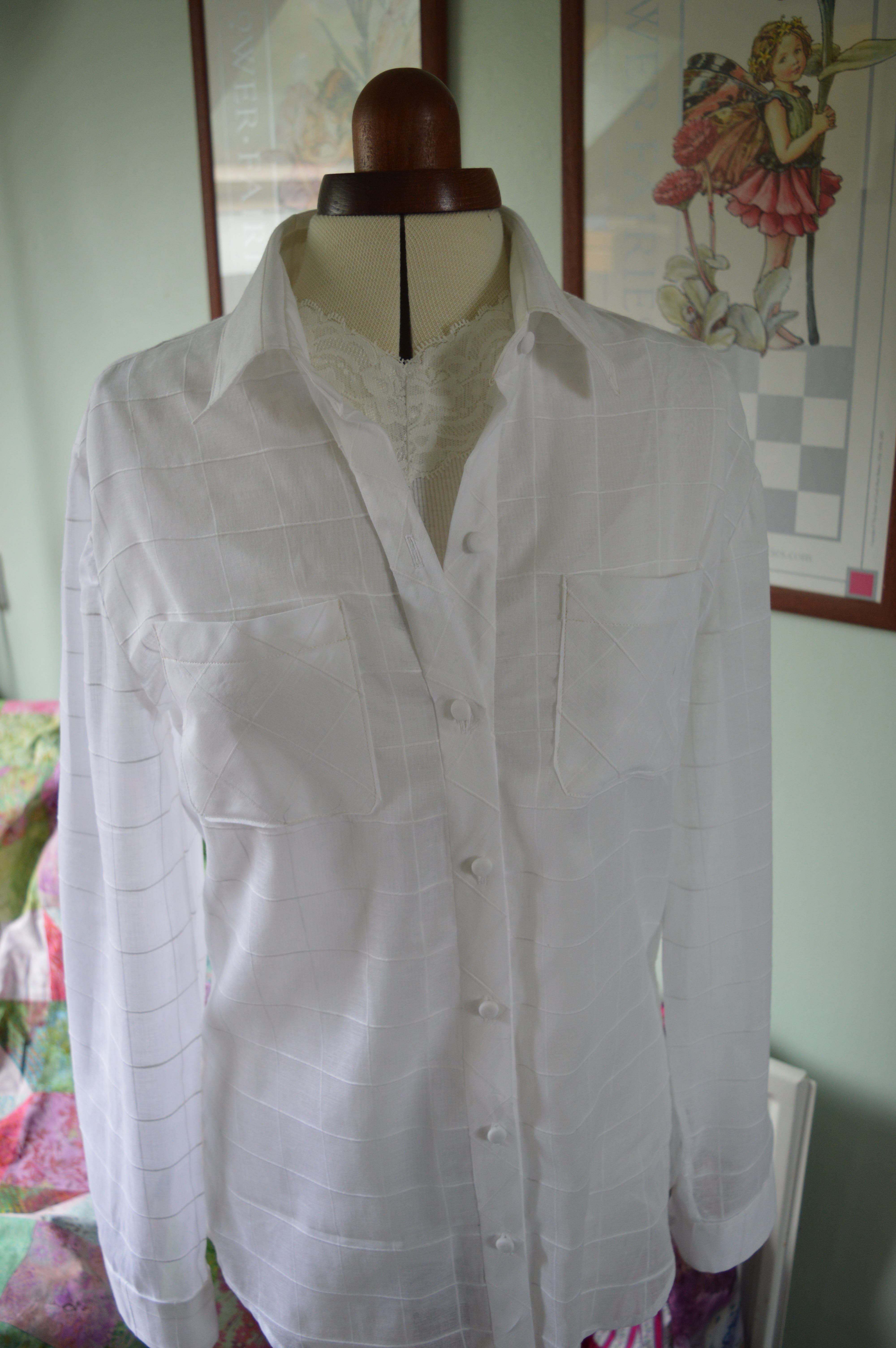 I’m really pleased with my shirt, I needed the challenge to make me do it (with two days to spare!) It’s a bit more see-through than I anticipated, I can see me wearing a camisole underneath as I don’t think the pockets will be enough for my modesty!! My usual photographer has gone back to college today, so Florence is modelling my shirt instead. Helen must be impressed as she’s asked me to make her a shirt and has even chosen some fabric from my stash…