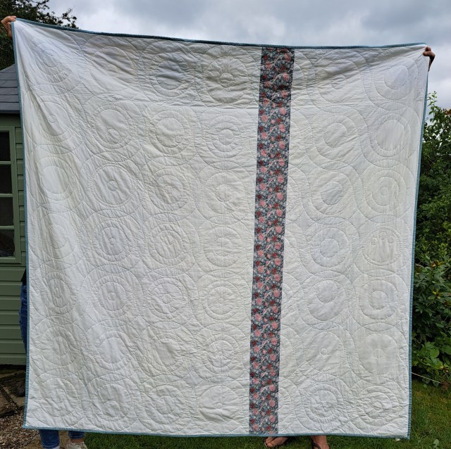 The quilt has already been through the washing machine, having taken two years and more importantly, been quilted during building work, I felt it was probably quite grubby. So it’s now fresh and clean, ready to go on a bed.