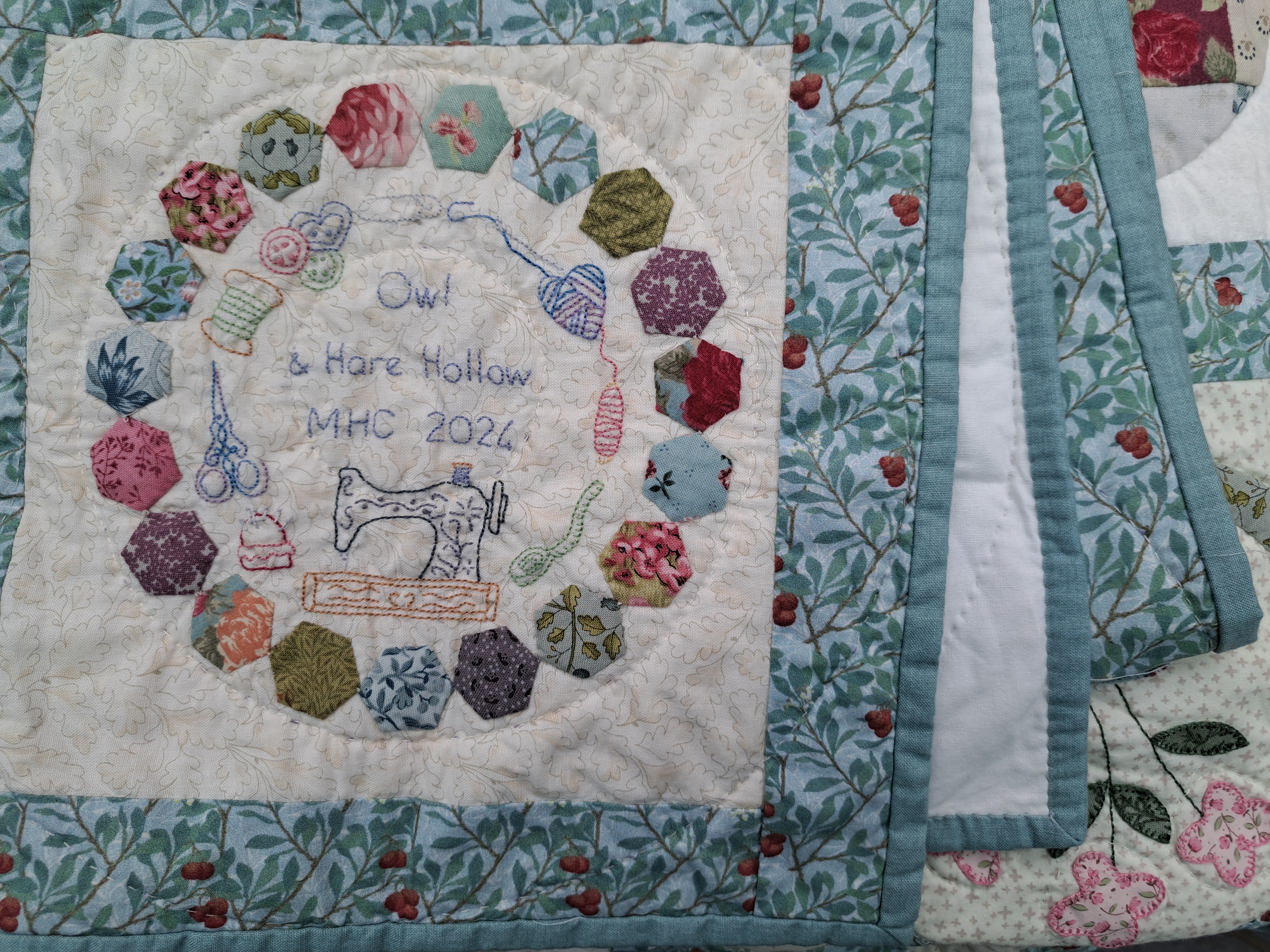 It’s happy dance time, I have finally finished my Owl and Hare Hollow quilt! It’s taken a while, it was back in April 2023 that I started the BOM from the Homespun magasine and it’s taken 12 months to hand quilt it.