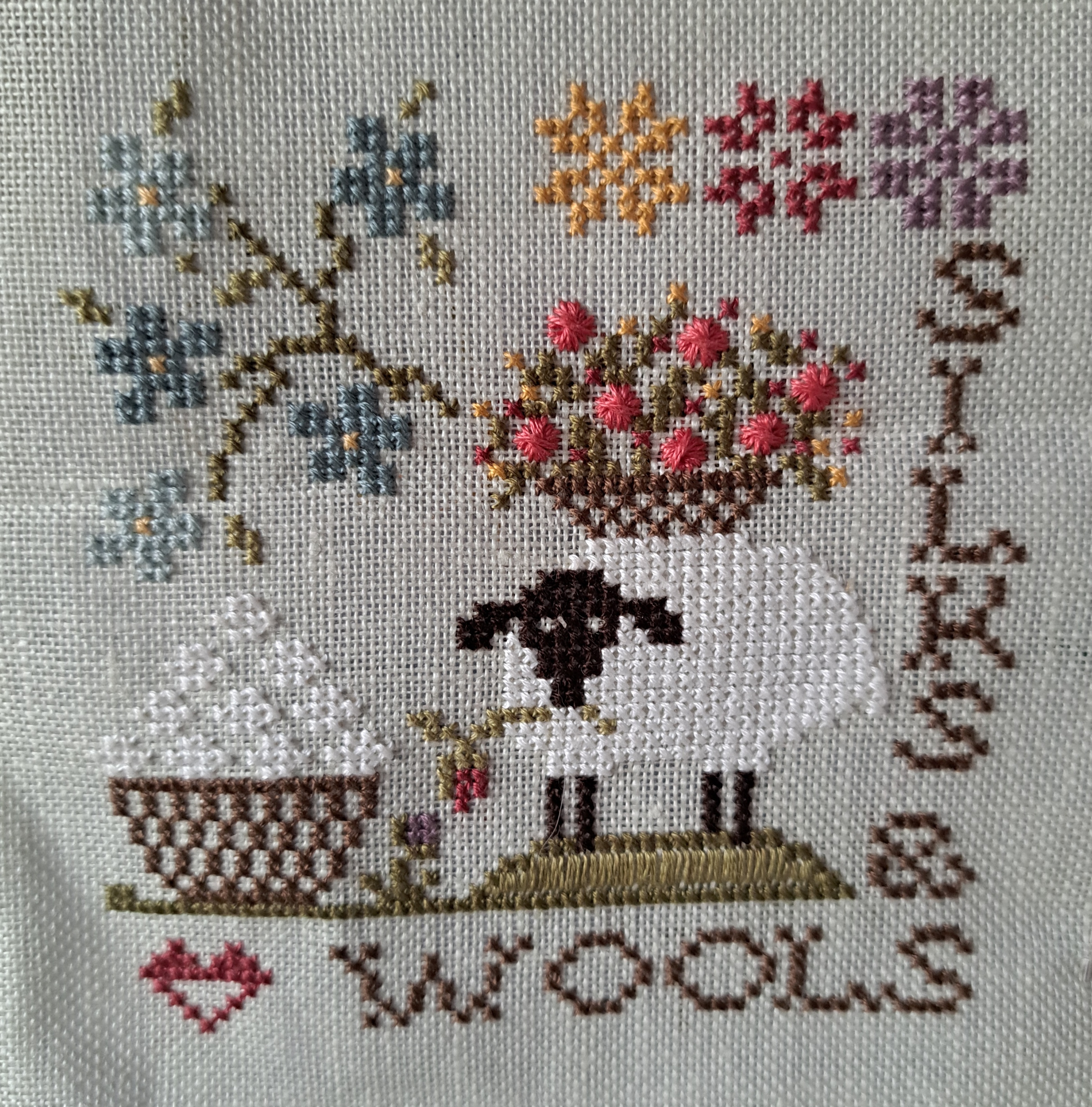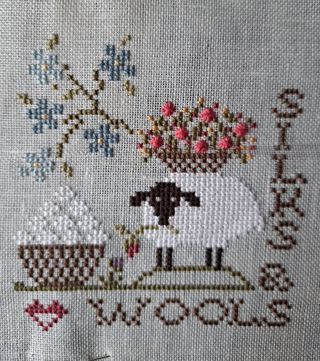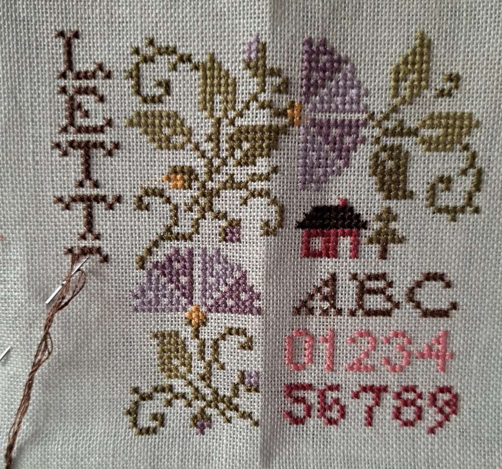 Having finished the Christmas rose humbug I decided to do another little pattern I’ve had for a while. It’s from a series called Sew Together by Jeanette Douglas, I’ve got two of the set on a facebook destash site, I think there’s eight altogether but I’m hoping to put them with some sheep cross-stitches in a book.