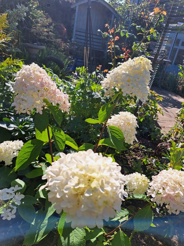 August tend to be a bit of a green month in England, many of the classic English garden flowers like roses, paeonies, geraniums, have either finished flowering or be past their best, I’ve dead-headed the roses hoping for a final flush at the end of the month as I’m having a retirement / birthday garden party. One plant that is looking glorious is the creamy white hydrangea, it’s the hydrangea paniculata vanilla frieze variety, I think it’s gorgeous and the blooms will hopefully last for weeks now. I’ve just bought another one from Otley market which is slightly pinkier.