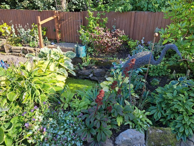 I had a long overdue clear-out in the pond over the weekend. I used a fishing net to pull out lots of duckweed, debris and pond weed. Sadly I didn’t see any newts this time, I’m not sure if it’s a time of year thing or if the pond had become too stagnant with rotting leaves. I left the stuff I pulled out next to the pond for a day to let any wildlife crawl back in but I didn’t see anything. I’ve ordered a few pond plants so hopefully they will help it become more enticing to wildlife again. The plants around the pond have gone a little mad, the original hostas are HUGE and I think once the autumn is here I might have a little move round.