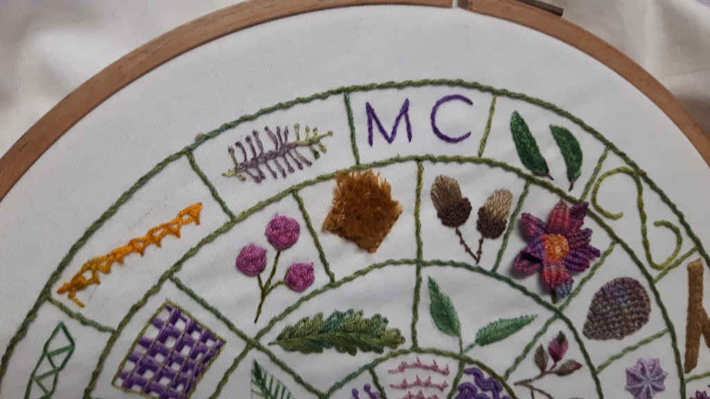 So this is as far as I’ve got so far. I’ve all the embroidery left now. I ordered a lampshade kit the other day so then I’ll just need an assistant to help me make it into a lamp! I’m pretty pleased with it so far.