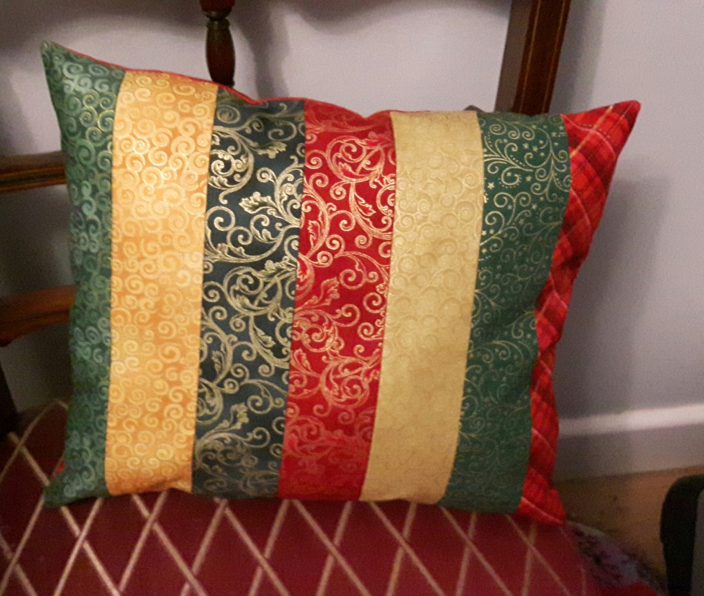 I didn’t have a cushion pad of the correct size, so as it’s only going to be on display at Christmas, I decided to stuff it and slip-stitch the opening. It also helped to reduce the amount of stuffing I seem to have acquired in my stash! In an ideal world it would have been nice to embellish it with a little trim, but as I didn’t have anything suitable it will have to wait probably until next year.