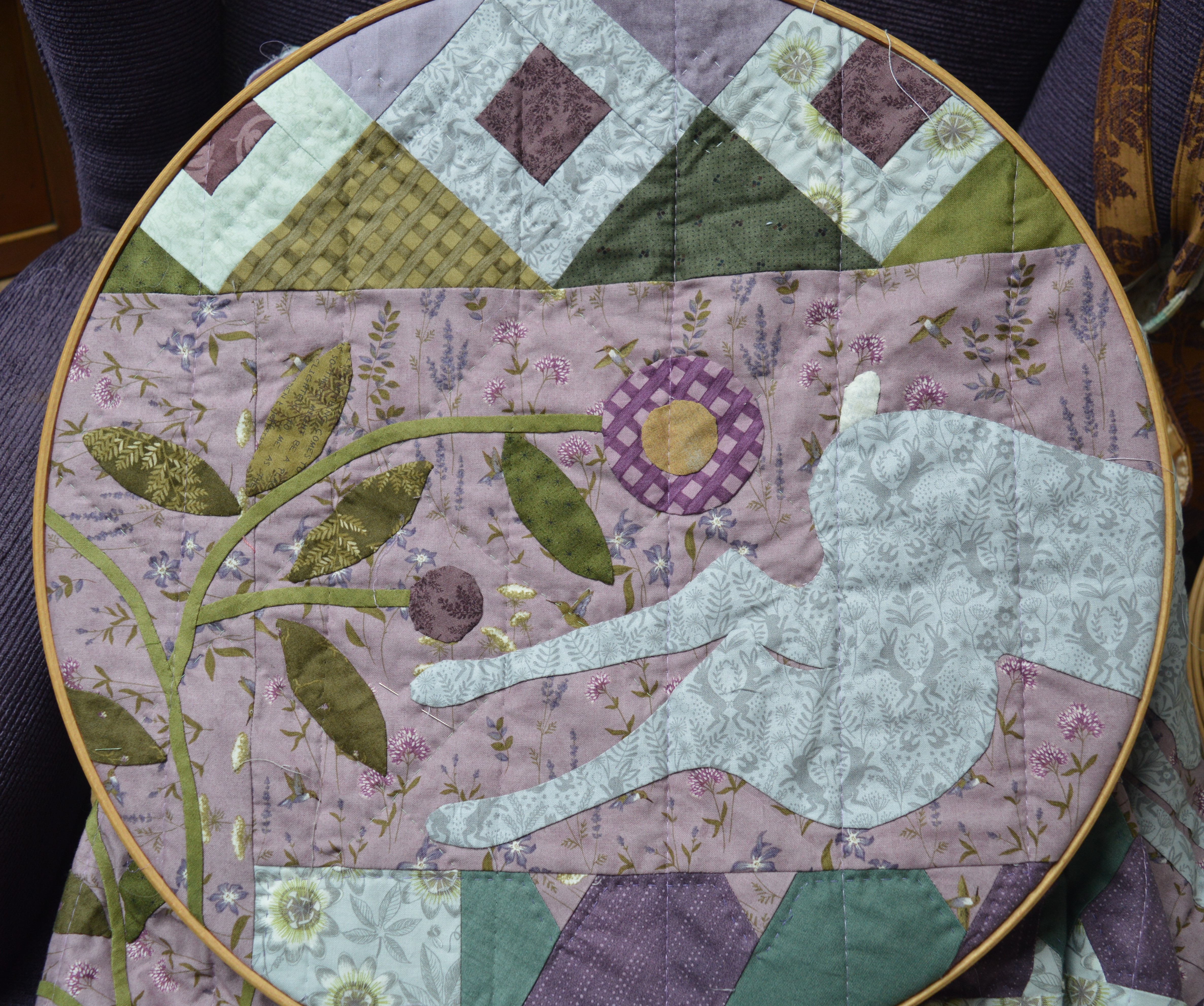 It’s three weeks since I last shared my Down the Rabbit Hole quilt with you, this is a Sarah Fielke quilt which I am now hand quilting, it’s taking a lot longer than I anticipated, but it is a very big quilt – 96″ square. I think I can finally see a glimmer of light at the end of the tunnel!