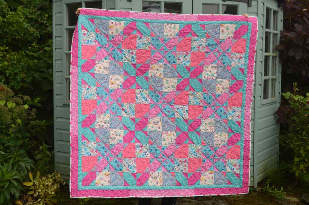 Heart to Heart Quilt; July 2024. Pink quilt as requested by my granddaughter, disappearing nine patch block.