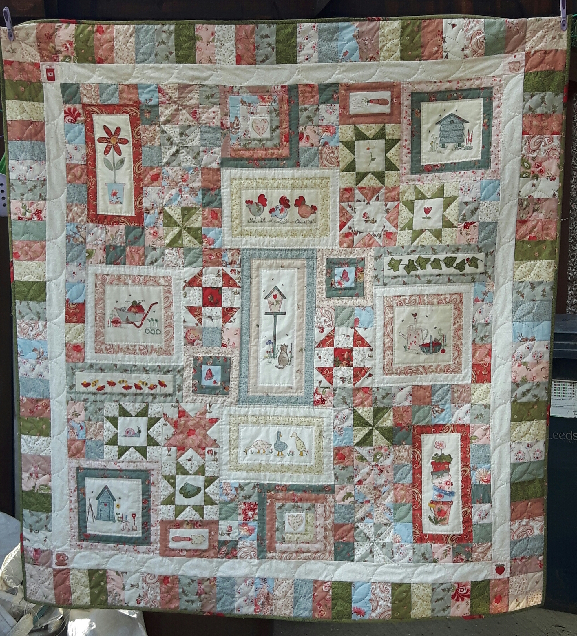 Bees and Blooms; April 2021. Design from book called The Cottage Garden Quilt by Kathryn Whittingham.